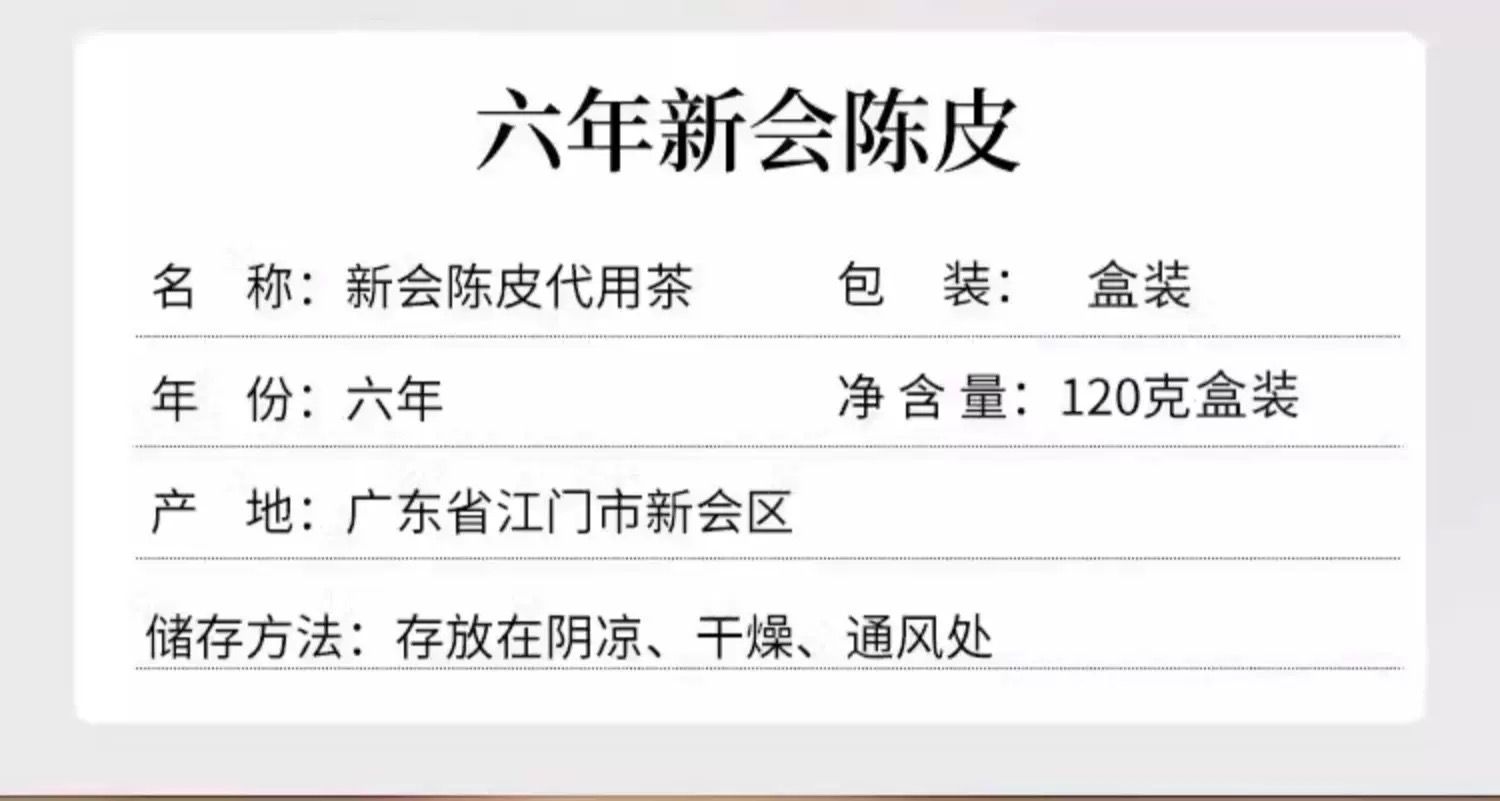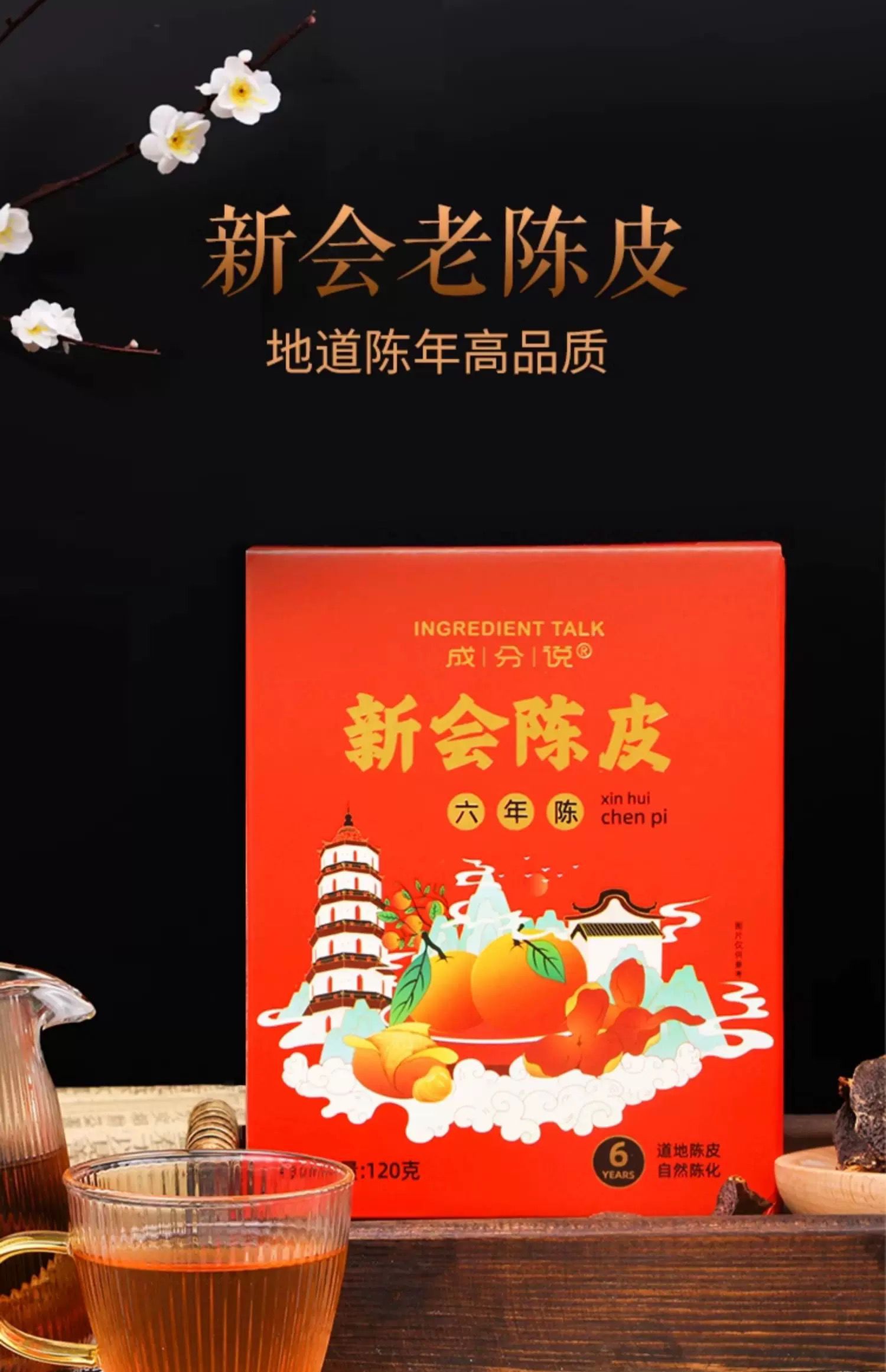 新会陈皮6年六年陈大红皮无硫120g 泡水煲汤顺气