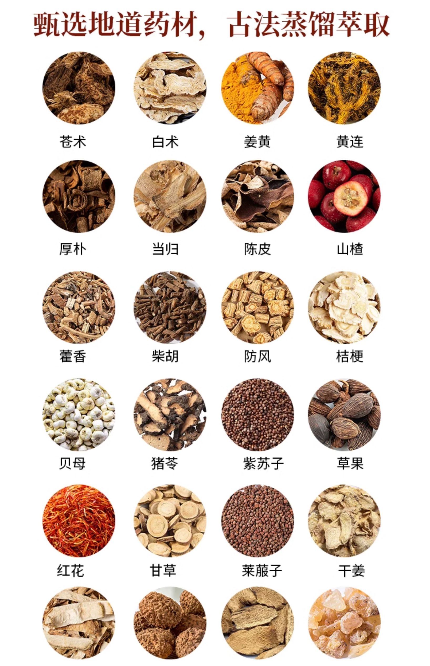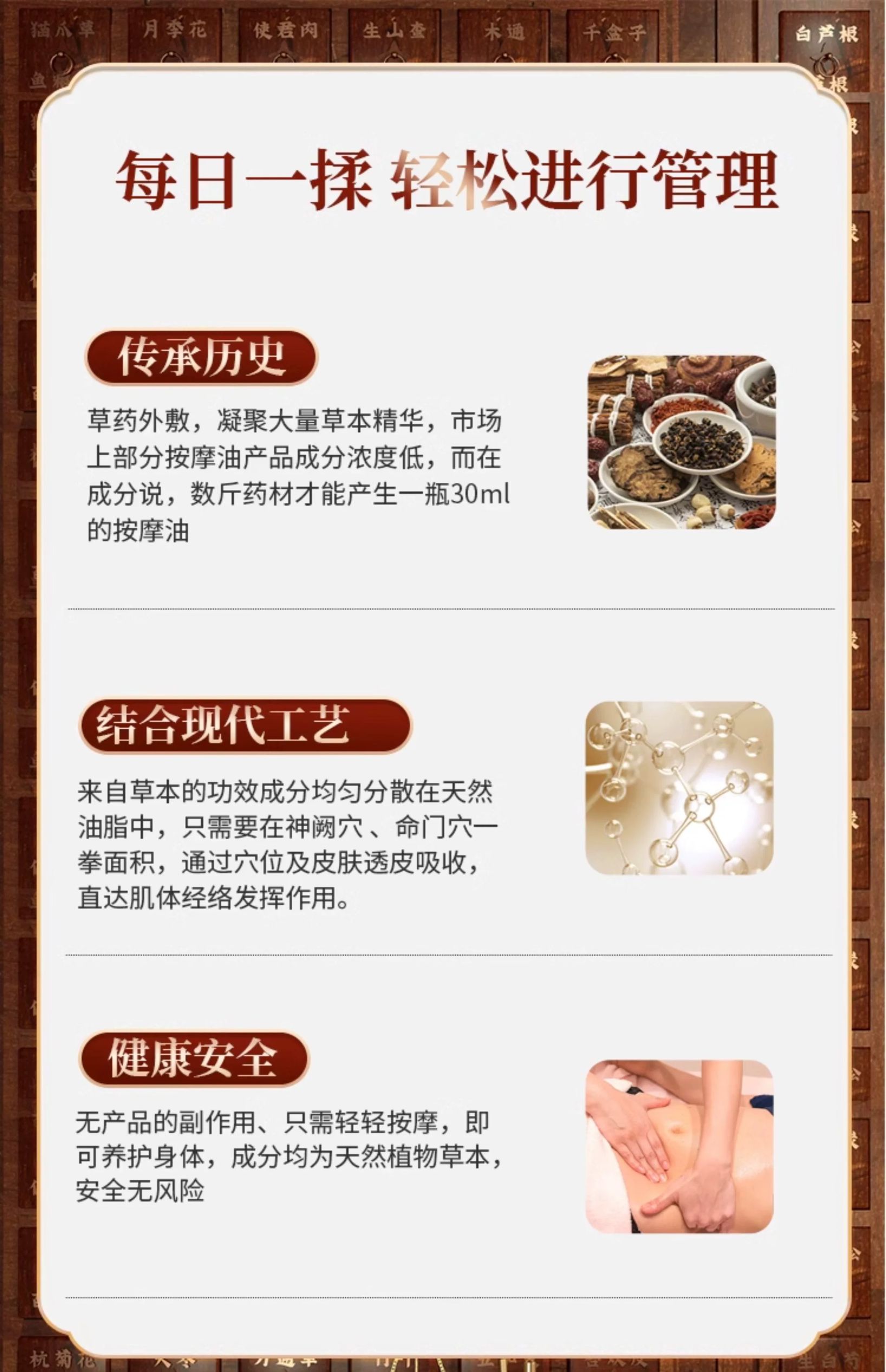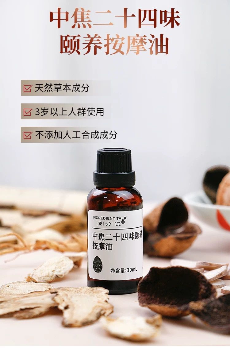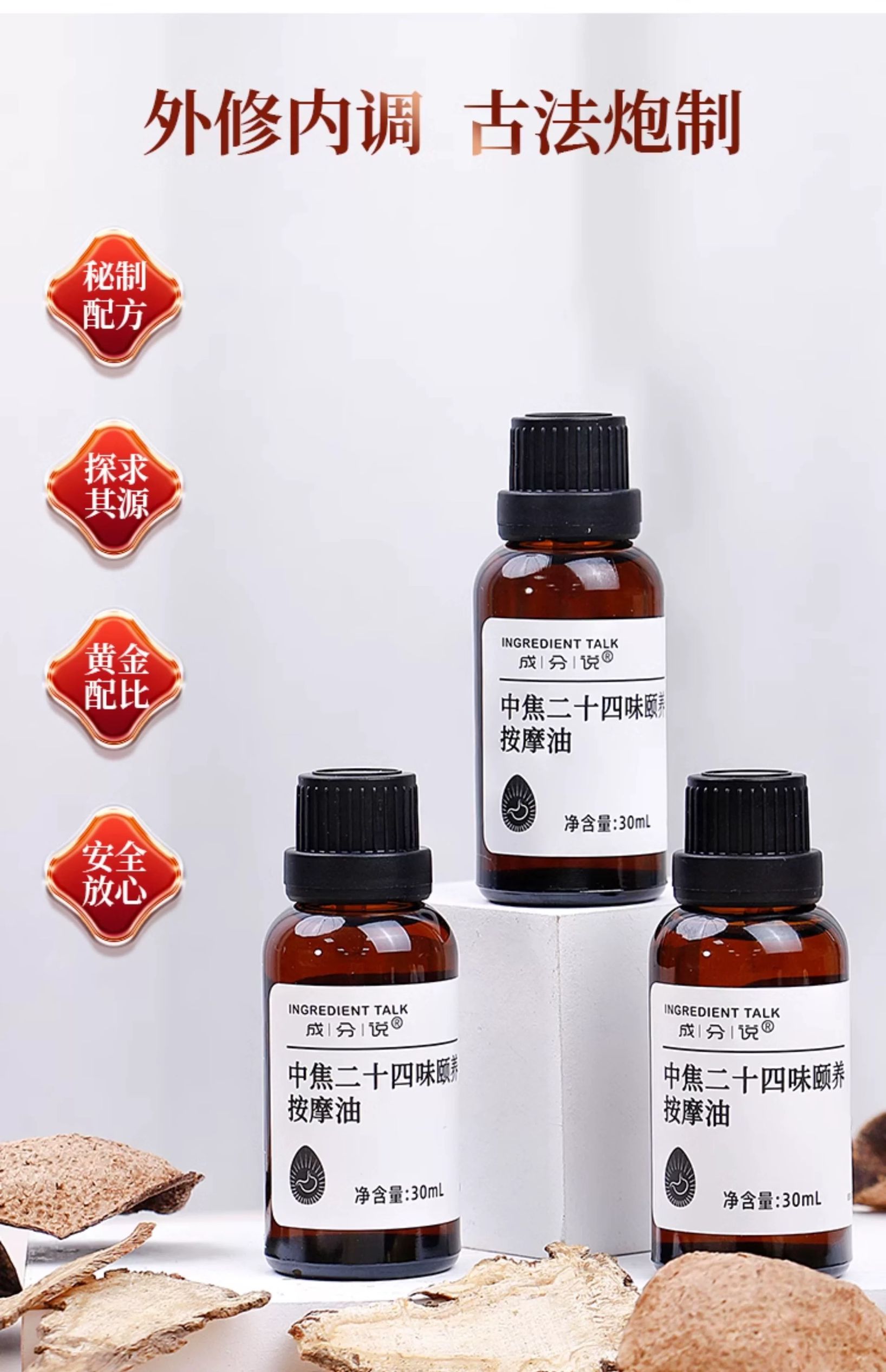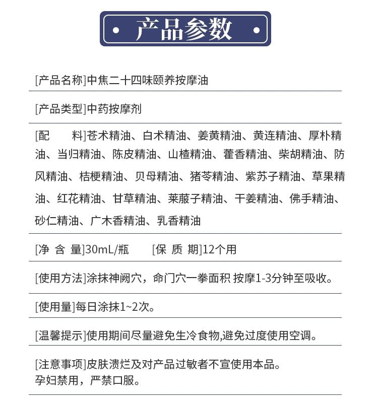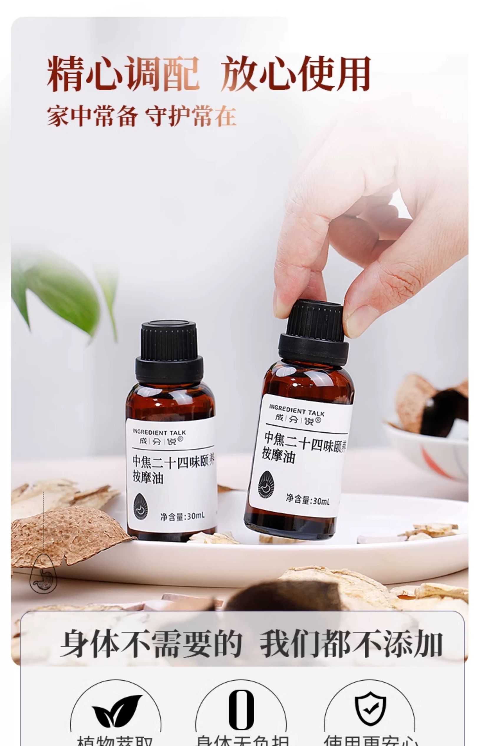 成分说中焦二十四味颐养按摩精油脾运胃揉腹调理温中草按摩油30ml